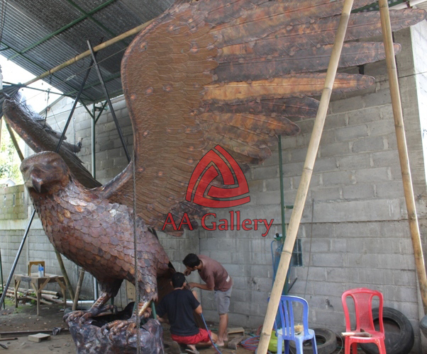 Masyarakat Indonesia pasti sudah tidak asing lagi dengan stasiun televisi nasional RCTI. RCTI merupakan bagian dari MNC Group. MNC Group kini telah merajai pertelevisian di Indonesia, bagaimana tidak selain RCTI, MNC Group juga memiliki stasiun televisi MNC (dulu TPI) dan juga memiliki stasiun televisi GlobalTV. Kembali lagi ke RCTI. RCTI terkenal dengan jinglenya “RCTI Oke ! ” RCTI juga terkenal dengan lambang elangnya. Beberapa waktu yang lalu AA Gallery dipercaya oleh RCTI untuk membuat dan memasang Patung Elang RCTI. Patung Elang RCTI dipasang di kantor RCTI Jl. Raya Perjuangan No.1, Kebon Jeruk, Jakarta. Kepercayaan yang diberikan pihak RCTI kepada AA Gallery ini merupakan suatu kehormatan dan kebanggaan bagi AA Gallery. AA Gallery yang telah beroperasi sejak tahun 1990 yang lalu dan fokus pada usaha kerajinan logam tembaga dan kuningan merasa senang karena telah dipercaya oleh stasiun televisi terbesar di Indonesia.